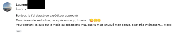 En bonus, je rajoute un ebook de 37 pages et un cours vidéo de +1h si tu agis maintenant. Ce programme bonus s’intitule “METHODE FASCINATION” et il est exclusivement disponible ici.